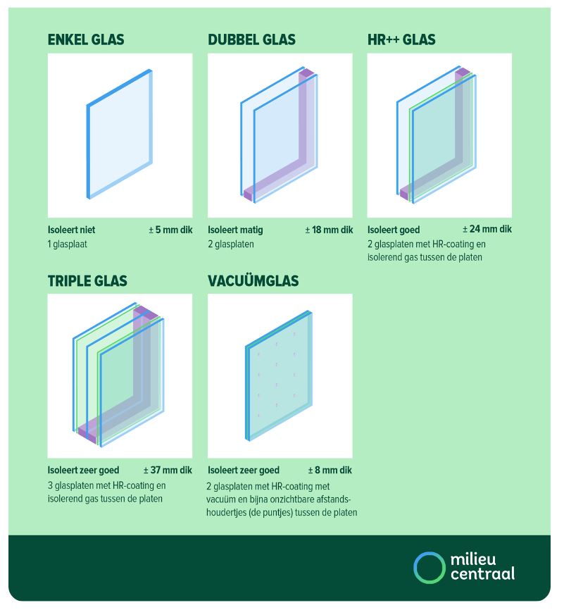 Zit er in jouw woning nog enkel glas, of oud dubbel glas? Vervang het dan door HR++ glas. Je houdt de warmte binnen en het wordt stiller in huis. En het is goed voor je energierekening en het klimaat.